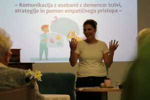 Skozi pogovor smo osvetlili, kako lahko z razumevanjem, s potrpežljivostjo in pravim pristopom izboljšamo vsakodnevno komunikacijo ter kakovost življenja oseb z demenco. Udeleženci so pridobili dragocena znanja, praktične usmeritve in priložnost za izmenjavo izkušenj.