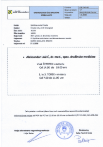 Obvestilo o novem delovnem času ambulante