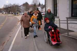 ✨Včeraj popoldne so nas obiskali otroci iz Vrtca Škratica Mica in nas razveselili z ročno izdelanimi lampijončki in okraski. Po prisrčnem nastopu naših najmlajših prijateljev, pripravljenem v sodelovanju z Glasbeno šolo Slovenj Gradec, smo se skupaj odpravili v mesto – na topel čaj s keksi iz domače kuhinje, klepet in občudovanje praznične razsvetljave. ✨