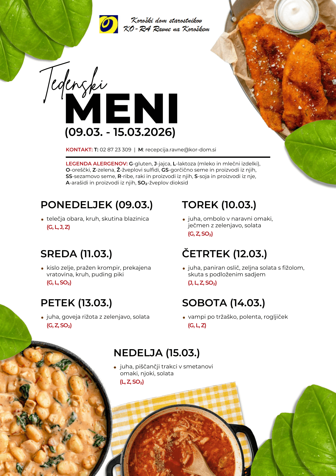 Oglejte si našo ponudbo jedi od 9.3. do 15.3.2026.
