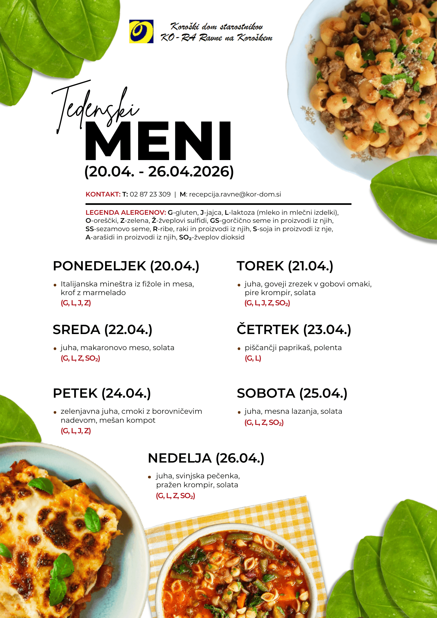 Oglejte si našo ponudbo jedi od 20.4. do 26.4.2026.