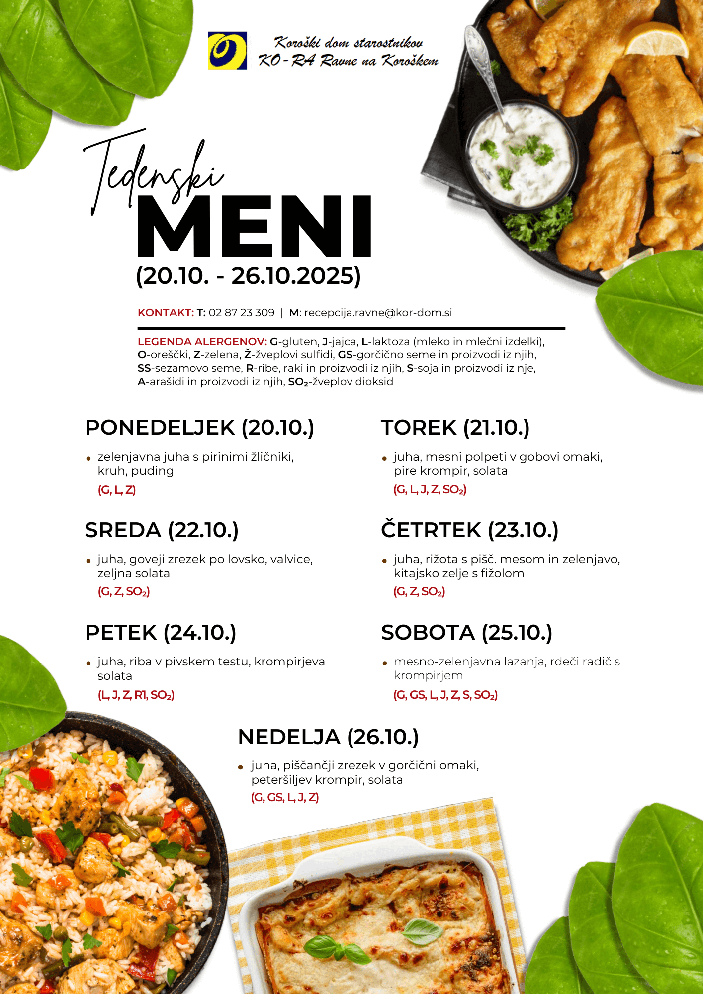 Tedenski jedilnik: 20.10. – 26.10.2025
