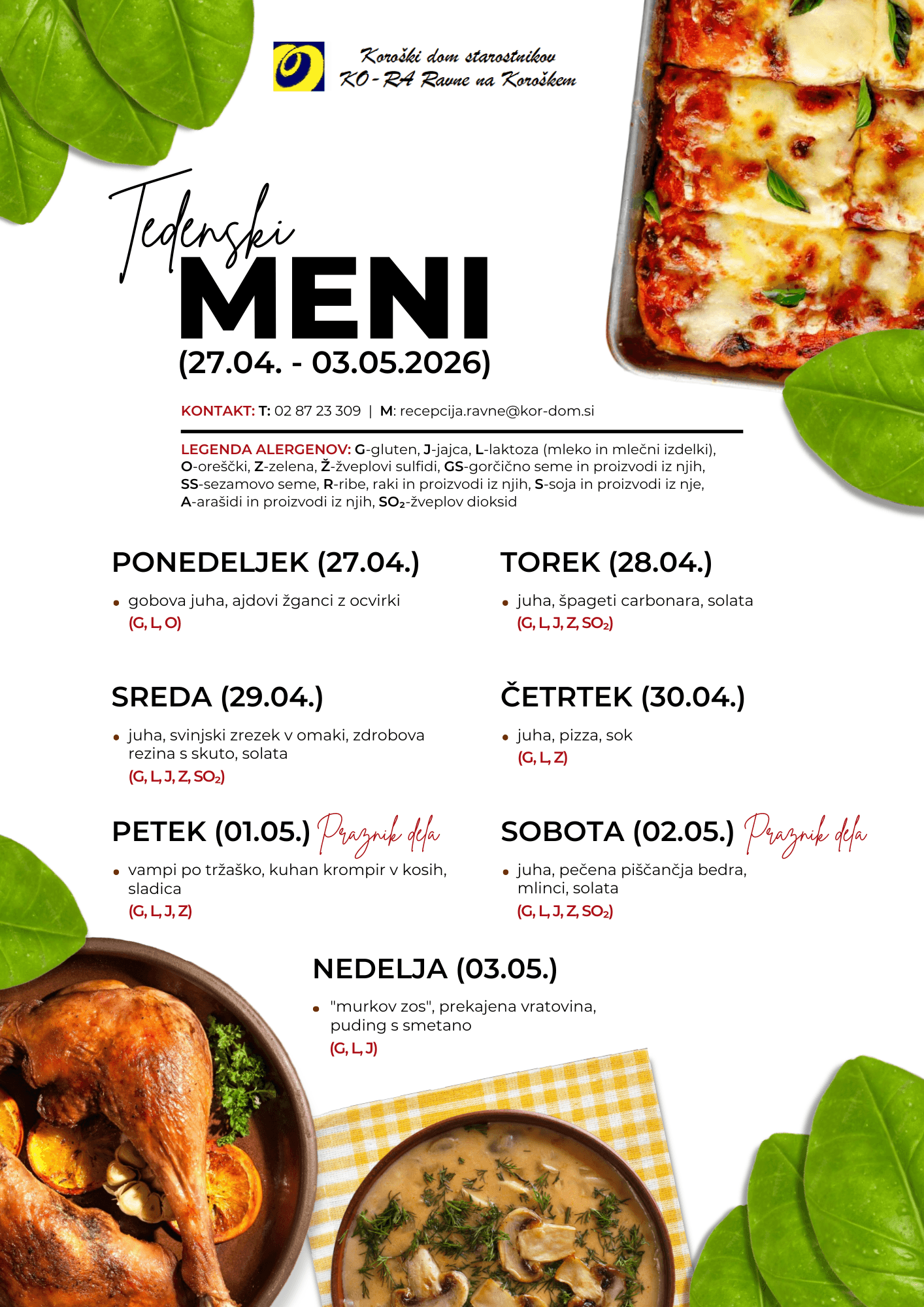 Oglejte si našo ponudbo jedi od 27.4. do 3.5.2026.