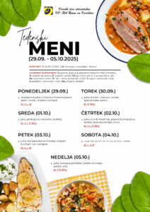 Tedenski jedilnik: 29.09. – 05.10.2025